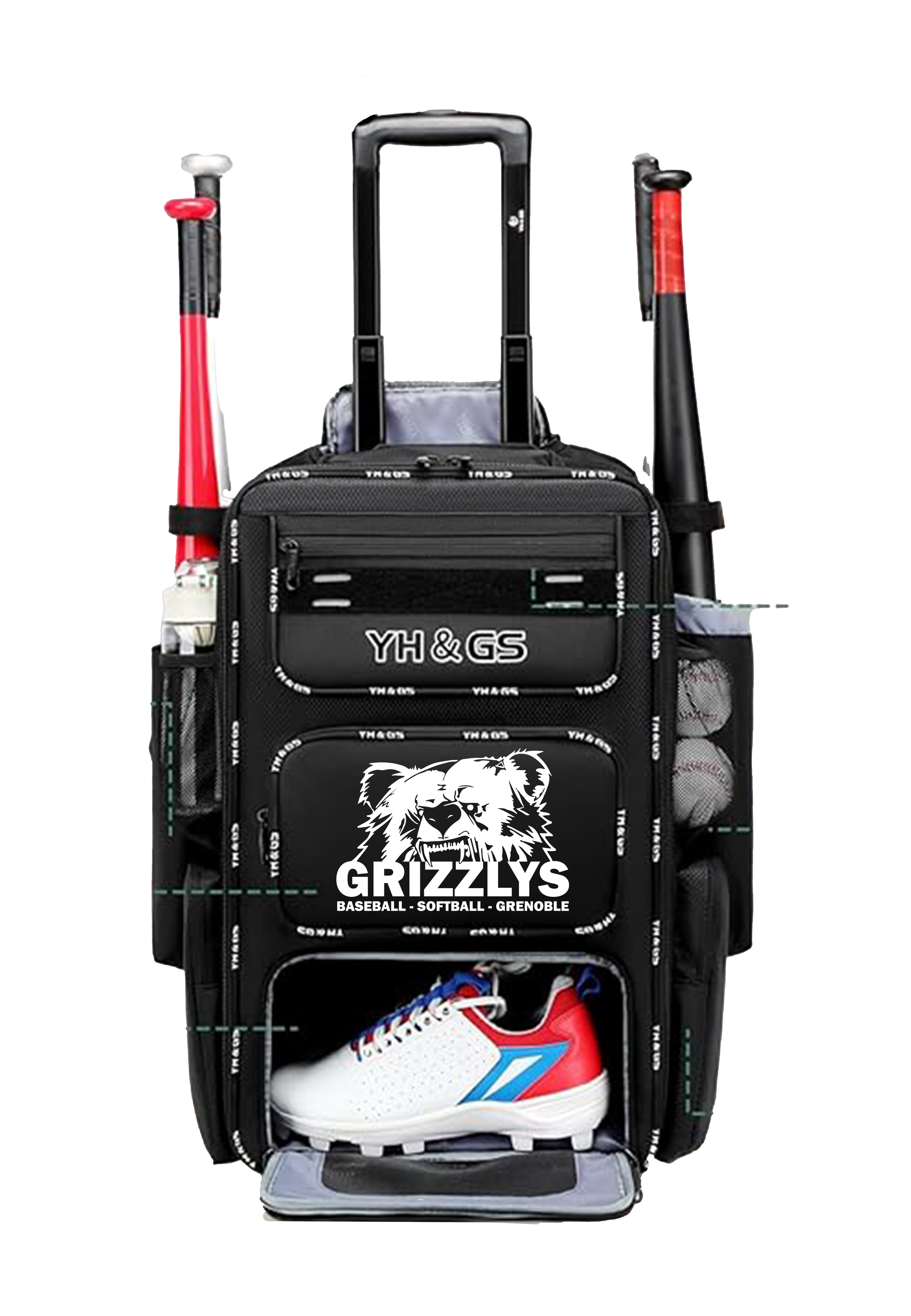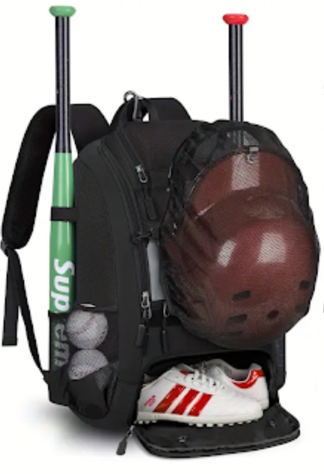 Poche filet à casque Compartiment à chaussures et battes Multiples poches